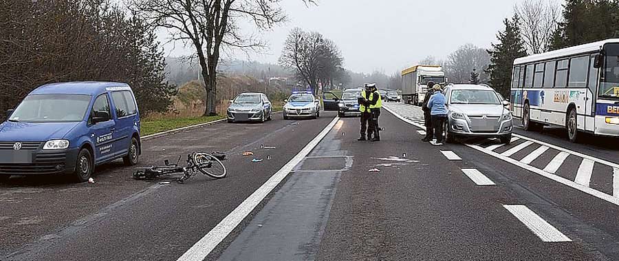 Do zdarzenia doszło we wtorek (26 listopada) na drodze krajowej nr 17 w Wólce Orłowskiej. – Ze wstępnych ustaleń wynika, że rowerzysta jadący przy krawędzi jezdni, nie ustąpił pierwszeństwa pojazdowi marki Volkswagen, jadącemu w tym samym kierunku, i wjechał wprost pod samochód – mówi Jolanta Babicz, rzecznik krasnostawskiej policji. Volkswagenem jechała 56-letnia mieszkanka gminy Bukowiec. 66-letni rowerzysta, mieszkaniec Krasnegostawu, doznał poważnych obrażeń ciała. Natychmiast został przewieziony do krasnostawskiego szpitala. – Policjanci wyjaśniają szczegóły tego zdarzenia i apelują o rozwagę na drodze – dodaje Babicz. (kg)