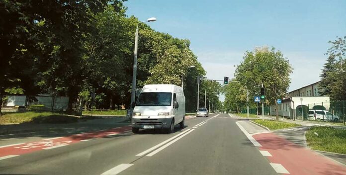 Chodzi o odcinek ulicy Lubelskiej od aquaparku w stronę galerii handlowej. W ramach zakończonej w zimie modernizacji po obu stronach jezdni namalowany został czerwony pas rowerowy. Zgodnie z przepisami obowiązuje na nim ruch jednokierunkowy, w kierunku zgodnym z ruchem samochodowym. Cykliści, jadący od centrum ciągiem pieszo-rowerowym, powinni zatem na wysokości Chełmskiego Parku Wodnego, gdzie kończy się stara ścieżka, przeprowadzić pojazd na drugą stronę ulicy i kontynuować jazdę czerwonym pasem zgodnie z kierunkiem jazdy. W praktyce jednak niewiele osób tak robi.