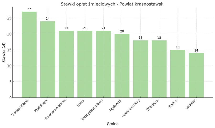 Większość samorządów w ostatnich miesiącach albo z początkiem tego roku podniosło opłaty za wywóz śmieci. Samorządowcy tłumaczą to koniecznością bilansowania, a przynajmniej minimalizowania dokładania do systemu gospodarki odpadami, a ceny ofert firm wywożących odpady z roku na rok rosną, bo rosną koszy ich składowania, płaca minimalna i inflacja. Różnice między stawkami obowiązującymi w poszczególnych gminach są jednak duże i trudne do racjonalnego wytłumaczenia. Pośród gmin powiat krasnostawskiego najmniej za śmieci płacą mieszkańcy Gorzkowa – 14 zł od osoby minus 2 zł za kompostowanie.