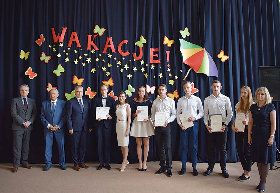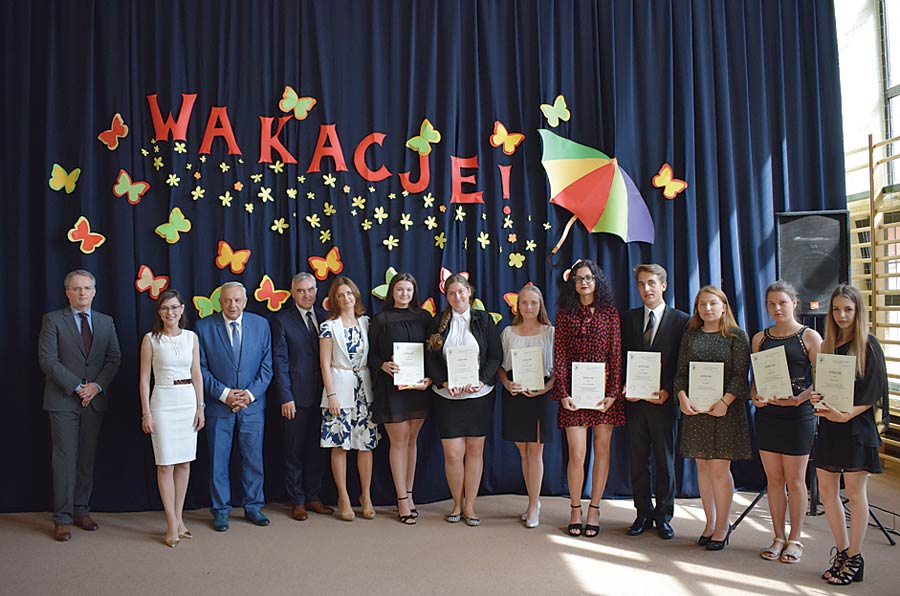 Otrzymali je: Katarzyna Dudek, Damian Ćwikła, Dominik Pitucha, Natalia Sulkowska, Natalia Kulczyńska vel Nowosad, Tomasz Szuba, Wiktoria Zwarzyńska vel Franczak, Sabina Drąg, Marceli Pacan, Przemysław Dobosz, Filip Tarajko, Adrian Kostrzanowski, Jakub Parzymies, Aleksandra Lisiecka, Kinga Malec, Daniel Gowin, Małgorzata Marczewska i Agata Troć. Dyrektor liceum Edyta Fidecka przedstawiła też wyniki obrad kapituły dokonującej wyboru kandydatów pretendujących do nagród i stypendiów.