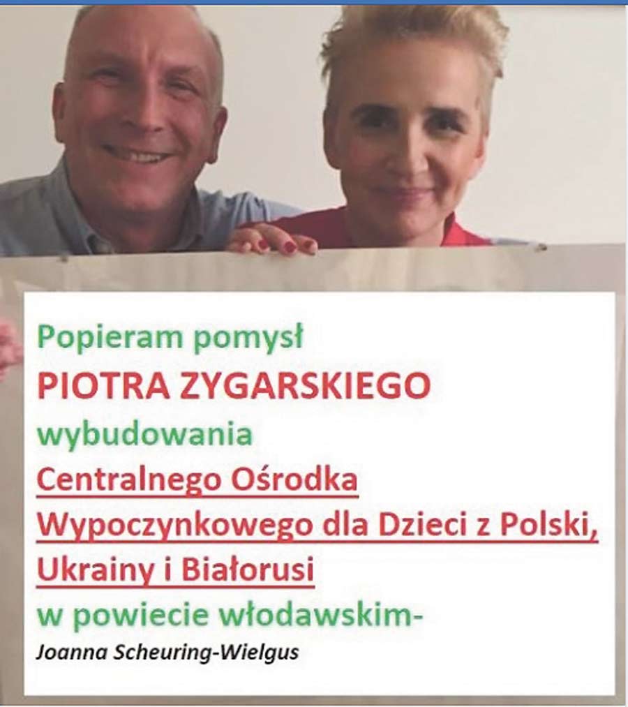 Ale kandydat ten ma też pomysł na inne „nasze” powiaty: w powiecie bialskim chce wybudować „Europejskie Centrum Hipoterapii dla dzieci” z autyzmem” (ten pomysł popiera Leszek Miller), a w zamojskim „Muzeum Dzieci Wojny” (tej idei patronuje Małgorzata Kidawa-Błońska). O planach P. Zygarskiego mało kto w powiecie włodawskim słyszał, choć wszyscy, łącznie ze starostą Andrzejem Romańczukiem, uważają ten plan za bardzo potrzebny. – Sam pomysł budowania centralnego ośrodka wypoczynkowego dla dzieci w naszym powiecie na pewno jest warty głębokiego przemyślenia – mówi starosta. – Jak jednak każdy pomysł wiąże się z pytaniem o źródła finansowania.