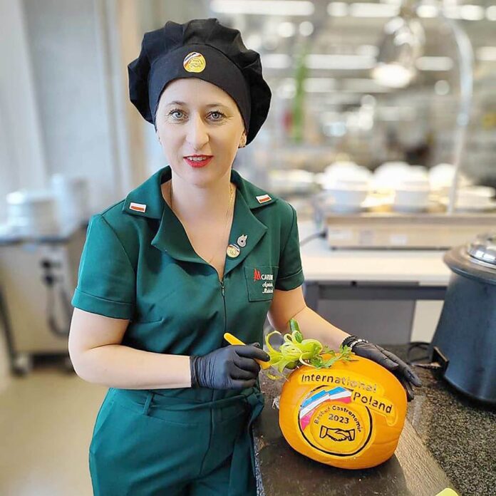 – Szefowie kuchni Michał Denesiuk i Mariusz Kuś z Mazur promowali polskie gołąbki w oryginalnej wersji, natomiast ja przedstawiałam i promowałam sztukę carvingu, rzeźbiąc loga firm: Roche, Zalando, Haufe, Cerdia, naszych gospodarzy. Nie jestem jeszcze członkiem stowarzyszenia Best of Gastronomie, ale zauważona zostałam jako prelegentka na Kongresie dla Dyrektorów i Nauczycieli Szkół Gastronomicznych, Hotelarskich i Turystycznych organizowanym przez Grzegorza Górnika, który odbywał się jesienią w Zamościu. Nowe znajomości i wspólna pasja do gastronomii sprawiły, że pojawiła się szansa uczestnictwa w międzynarodowym programie „Guest Star Chef”. Na wyjeździe było bardzo pracowicie, ale i satysfakcjonująco. Dużo dowiedziałam się o funkcjonowaniu dużych kuchni, takich, które wydają posiłki dla kilkuset czy nawet kilku tysięcy osób. Była to na pewno bardzo pouczająca i ciekawa przygoda – mówi pani Agnieszka.