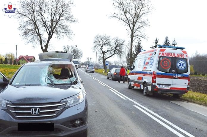 Środa, (22 listopada), około godziny 11, Wereszyn (powiat hrubieszowski). Jadąc w kierunku Dołhobyczowa, 38-letni kierowca audi uderzył w sarnę, która nagle wtargnęła na jezdnię. Zwierzę przeleciało na przeciwny pas ruchu i uderzyło w hondę, którą w kierunku Hrubieszowa podróżował 62-letni mieszkaniec Chełma. Wpadło przez przednią szybę i uderzyło bezpośrednio w kierowcę.