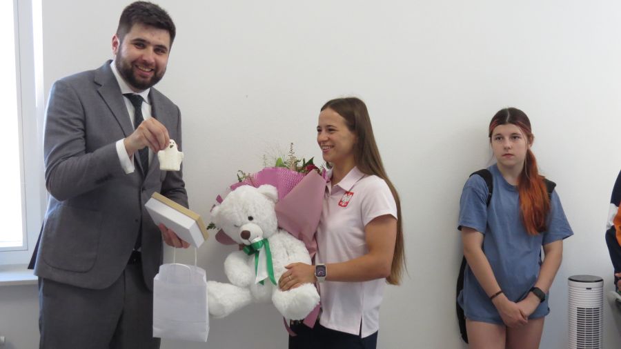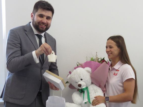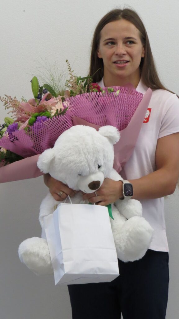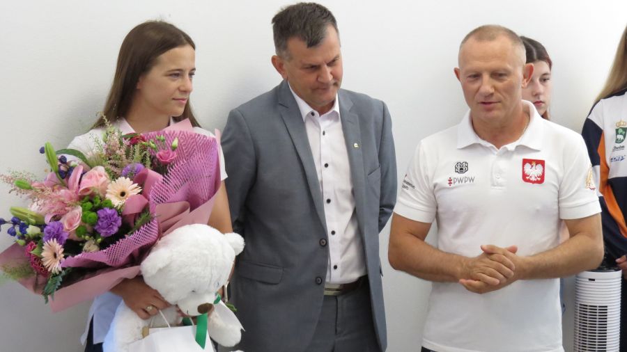 – Masz wsparcie ze strony mieszkańców, władz miasta, swoich przyjaciół, klubu. Jesteśmy z Ciebie dumni i wierzymy w twój sukces – zapewnił Anhelinę Jakub Banaszek, prezydent Chełma, wręczają jej na szczęście n.in. białego misia oraz flagę Chełma, aby mogła ją rozłożyć na igrzyskach, świętując sukcesy.