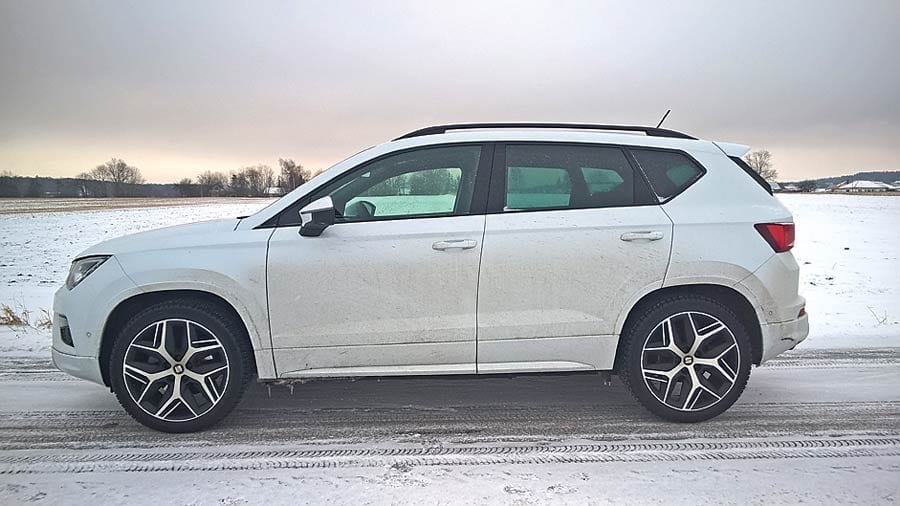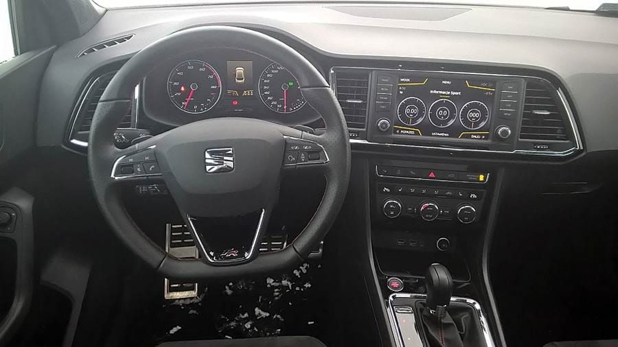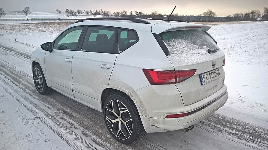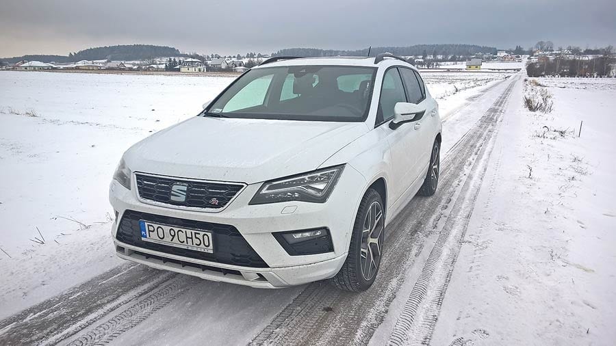Seat Ateca w moim odczuciu był nieco bardziej miękki od swoich kuzynów z grupy VAG. Według mnie to atut, tym bardziej, że testowy model miał na pokładzie adaptacyjne zawieszenie z kilkoma opcjami do wyboru – eco, normal, sport, snow, czy off-road, więc łatwo było dostosować twardość resorowania do warunków na drodze i prędkości. Warto tu dodać, że napęd 4Drive świetnie sprawdzał się na ośnieżonych drogach. Auto prowadziło się bardzo pewnie, tył dołączał się niemal w punkt, przez co samochód był bardzo przewidywalny i łatwy do opanowania.
