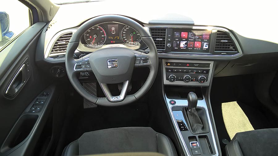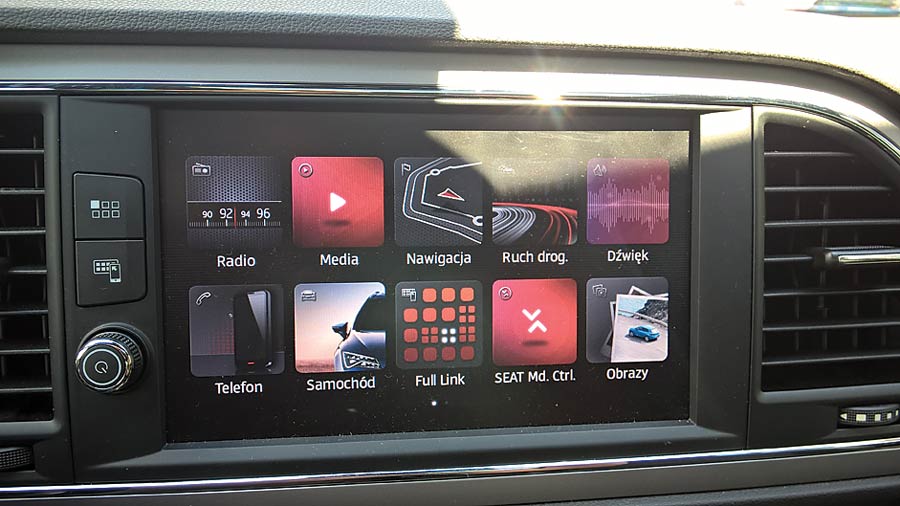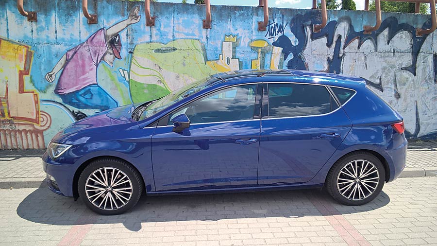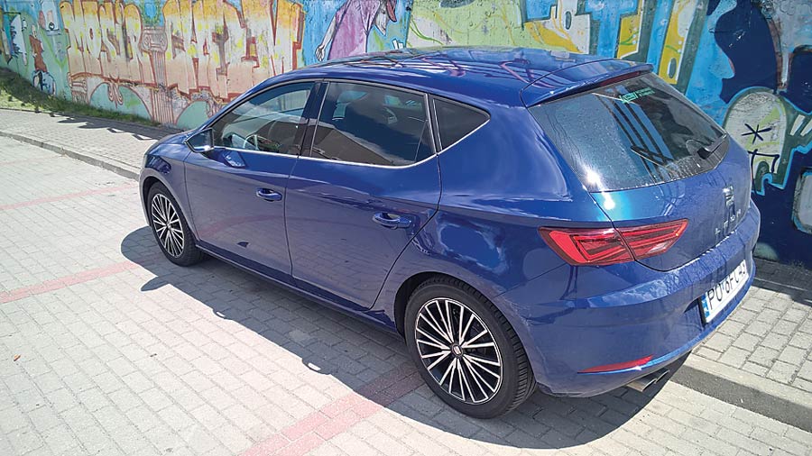 Zdecydowane, ostre kształty, zwarta sylwetka i agresywny pas przedni Leona prezentują się kapitalnie. Podobnie jak podwójna końcówka wydechu, napompowany zderzak, spojler i tylne lampy podkreślone dodatkowo ostrym przetłoczeniem. Dlatego trochę rozczarowuje wnętrze, w którym nie jest już tak sportowo. Pod względem spasowania i jakości zastosowanych materiałów jest nieźle. Kokpit Seata to wzór prostoty – czarna deska rozdzielcza jest podzielona na dwie części – w górnej mamy „volkswagenowski” wyświetlacz nawigacji, radia, telefonu i ustawień samochodu, niżej zaś tradycyjny panel do sterowania klimatyzacją. Trójramienna kierownica ma idealną wręcz grubość wieńca i charakterystyczną, wypukłą część środkową oraz ścięty dół. Wszystko to razem nie tylko fenomenalnie leży w dłoniach, ale też i świetnie wygląda. Zegary są do bólu proste i czytelne. Rozdziela je kolorowy wyświetlacz, na którym pojawiają się wszystkie informacje potrzebne (i nie tylko) kierowcy. Słowa uznania należą się Leonowi za kapitalne fotele – głębokie, okalające ciało siedziska świetnie trzymają w zakrętach, a obszycie z czerwonej nici świetnie wygląda.