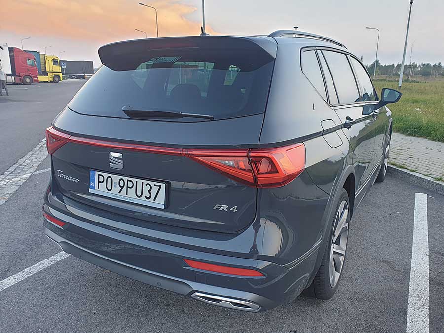 Ponad 470 cm długości i 184 cm szerokości – wymiary Seata Tarraco robią wrażenie. Choć patrząc na auto z boku, ciężko znaleźć elementy odróżniające je od Tiguana czy Kodiaqa, to już od frontu i z tyłu nie ma z tym najmniejszych problemów. Szczególnie charakterystyczny jest pas przedni, który dla mnie jest połączeniem stylu Lexusa i Volvo, a więc zupełnie innej szkoły projektowania samochodów.