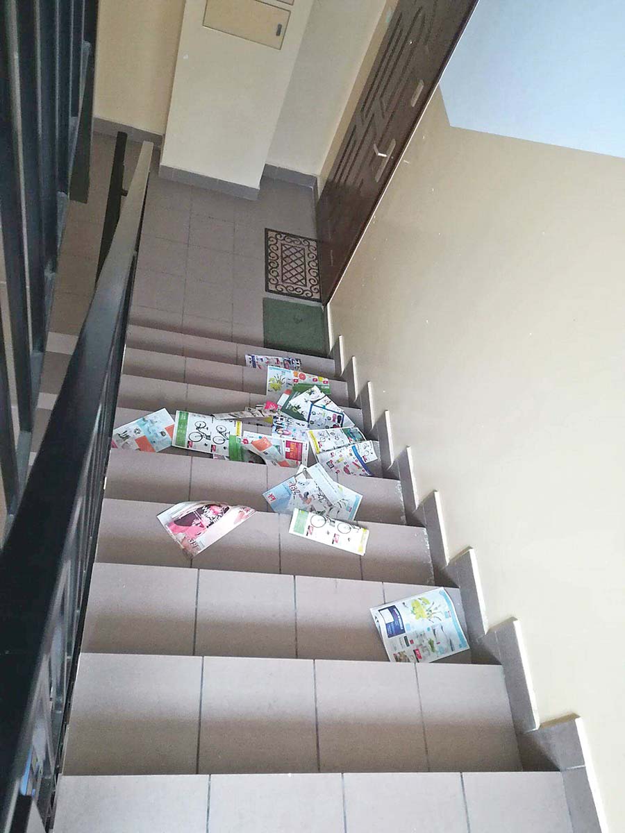 Przy ul. Pocztowej 26 mieszka kilka rodzin. Sami sprzątają klatkę schodową zgodnie z wyznaczonymi dyżurami. Jakiś czas temu zaczęli też sprzątać po „kimś”. Najpierw zobaczyli porozrzucane na schodach gazetki i ulotki reklamowe. Posprzątali. Potem był rozsypany na klatce ryż. Jak któryś z mieszkańców go posprzątał, po chwili znów na schodach leżały porozrzucane ziarna. Później był rozlany sok buraczany, jakieś lepkie napoje. Kilkakrotnie ktoś z mieszkańców poślizgnął się na mokrych i lepiących się schodach, i przewrócił – nie obyło się bez urazów kolana.