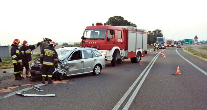 Do groźnego wypadku doszło w piątek o godz. 5.00. – Dokładnie o godz. 5.03 dostaliśmy wezwanie do zdarzania drogowego, jakie miało miejsce w Zakręciu – informuje Kamil Bereza, rzecznik prasowy krasnostawskiej straży pożarnej. – Okazało się, że jadący Skodą Fabią na warszawskich numerach rejestracyjnych 25-latek nagle zjechał na przeciwny pas ruchu i zderzył się z busem marki Fiat – dodaje. Kierowca osobówki najprawdopodobniej zasnął za kierownicą. Mężczyzną od razu zajęła się ekipa pogotowia, ostatecznie 25-latek został przewieziony do szpitala, ale jego życiu nie zagraża żadne niebezpieczeństwo. Kierowcy Fiata Ducato na lubelskich tablicach nic się nie stało. Przez trzy godziny przejazd krajową „siedemnastką” był utrudniony. (k, fot. Straż Pożarna Krasnystaw)