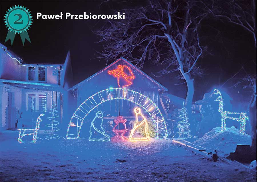 II miejsce (nagroda 300 zł) – Paweł Przebiorowski (Uzasadnienie: To szczególna kompozycja zaprojektowana i wykonana przez Pana Pawła. Już w ubiegłym roku została doceniona przez jury. W tej edycji została zdecydowanie rozbudowana. Całość tworzy świetlistą bożonarodzeniową szopkę).