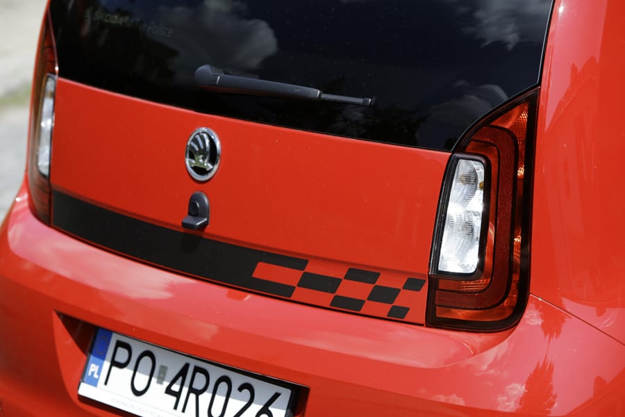 Z zewnątrz czeski maluch prezentuje się całkiem nieźle. Krótka, ostro opadająca maska, duże reflektory oraz masywny zderzak bez zbędnych przetłoczeń – przód małej Skody to wzór prostoty, ale w dobrym stylu. Na masce mamy logo marki, a tuż pod nim czarną atrapę chłodnicy z pionowo ustawionych żeberek. Napompowany do granic możliwości tylny zderzak i malutka klapa bagażnika z jeszcze mniejszą szybką wyglądają dość oryginalnie, ale trzeba przyznać, że taki zabieg sprawia, że autko wygląda na dużo większe. Ma to i jednak złą stronę, bo przez wysoki próg załadunku znacznie obniża się funkcjonalność auta. Dla nas bezsprzecznie największą zaletą małej Skody jest jej uniwersalność. To auto dla każdego. Jest tylko jeden warunek – ten samochód musi służyć do jazdy po mieście i jego najbliższych okolicach. Wersję Monte Carlo od zwykłej Citigo wyróżnia czerwony kolor i czarne szachownice umieszczone na progach, czy tyle auta, pakiet spojlerów i efektowne alufelgi, zaś w środku wstawki z czerwonego plastiku i dedykowane fotele. Jednak to co najlepsze mała Skoda skrywa wewnątrz. Mowa o wprost niesamowitych ilościach wolnego miejsca wygospodarowanego w środku tak niewielkiego pojazdu. Tym autem bez najmniejszych przeszkód podróżować mogą 4 osoby i żadna z nich nie powinna narzekać. Miejsca nie brakuje zarówno na nogi, jak i nad głowami pasażerów, a do tego do dyspozycji pozostaje bagażnik o pojemności 251 litrów, który w klasie daje Skodzie palmę pierwszeństwa. Po złożeniu tylnej kanapy przestrzeń bagażowa rośnie do aż 959 litrów. Na słowa uznania zasługuje również staranne wykonanie całej kabiny. Materiały użyte do jej wykończenia, mimo iż nie najwyższej jakości, są bardzo dobrze spasowane. Szkoda tylko, że plastiki i tapicerka są szare, przez co wnętrze sprawia wrażenie ciemnego i ponurego – młodym ludziom taka kolorystyka na pewno do gustu nie przypadnie. Nie pozostaje więc im nic innego, jak doposażyć swoje auto w jasnokremową tapicerkę, która diametralnie zmienia charakter wnętrza.