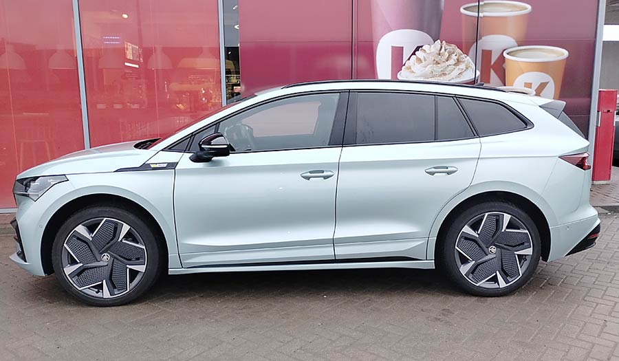 Testowa RS-ka została wyposażona w dwa silniki elektryczne zamontowane na obu osiach, których moc całkowita wynosi 299 KM. Dzięki napędowi na wszystkie koła i elektronice Skoda rozpędza się do setki w niewiele ponad 6 sekund a jej prędkość maksymalna to 160 km/h. Baterie najmocniejszej wersji Skody Enyaq mają pojemność 82 kWh i pozwalają przejechać na jednym ładowaniu ok. 540 kilometrów w cyklu WLTP, czyli w warunkach idealnych. W normalnym użytkowaniu zasięg jest oczywiście mniejszy, ale i tak powinien wystarczyć na przejechanie ok. 400 km w cyklu mieszanym. Średnie zużycie energii to ok. 22 kWh na 100 kilometrów w warunkach wiosennych, czyli przy temperaturach rzędu 15 stopni Celsjusza. Problemy zaczynają się, gdy temperatura spada poniżej zera. Wtedy nawet trzykrotnie wydłuża się czas ładowania baterii (normalnie od 0 do 80 procent trwa to niespełna 40 minut). Pomijając to, ta wersja Skody i tak jest jednym z tych elektryków, którymi bez odwiedzania stacji ładowania przejedziemy największą odległość.