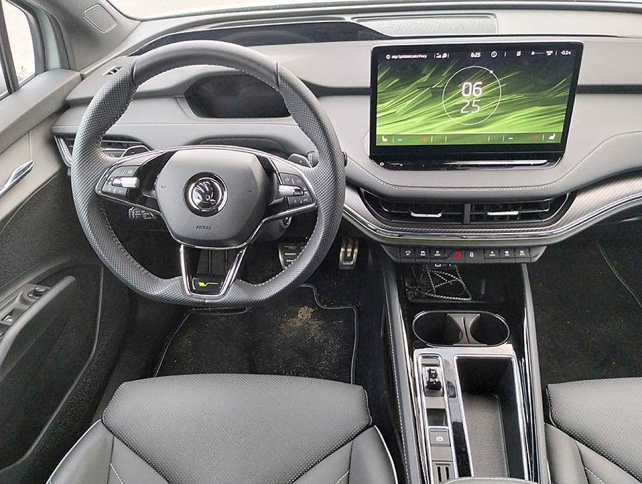 Skodą Enyaq jeździ się bardzo przyjemnie. Obszerne wnętrze i świetne zawieszenie zachęcają do dłuższych podróży. Z racji swojej budowy i dużego ciężaru samochody elektryczne nie są kojarzone z szybkim pokonywaniem zakrętów. O dziwo, 80 Maxx radził sobie z tym nadzwyczaj dobrze i jechał niemal jak przyklejony do asfaltu. Spory prześwit i napęd na cztery koła (uruchamiany przy dynamicznym starcie i przy jeździe terenowej z prędkością do 20 km/h) oraz oprogramowanie, które niweluje działanie funkcji ESP pozwalają na zjechanie z utwardzonych szlaków bez obaw o zakopanie się w kopnym piachu czy błocie, więc Skoda zachowuje dla tego modelu pełną funkcjonalność klasycznego SUV-a.