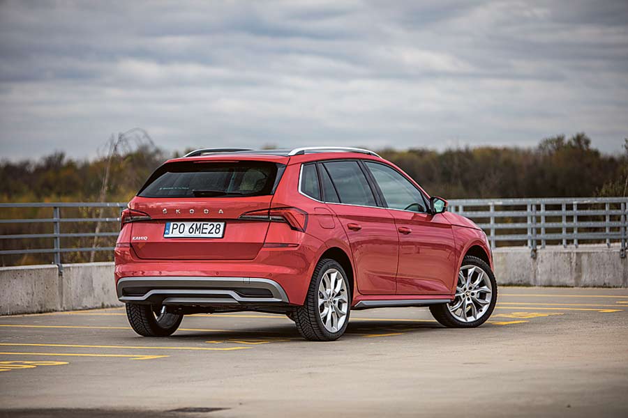 Kto jeździł Skodą, ten po zajęciu miejsca za kierownicą Kamiqa nie będzie zawiedziony. Zawieszenie jest zestrojone sztywno i sprężyście, więc dziurawe drogi nie będą środowiskiem, w którym to auto poczuje się jak ryba w wodzie, choć trzeba przyznać, że amortyzacja realizowana jest cicho. Dzięki prześwitowi wynoszącemu prawie 19 cm Kamiq nie ma problemów z wjeżdżaniem na krawężnki, czy pokonywaniem gruntowych dróżek. Wyciszenie kabiny przy prędkościach autostradowych pozostawia nieco do życzenia.