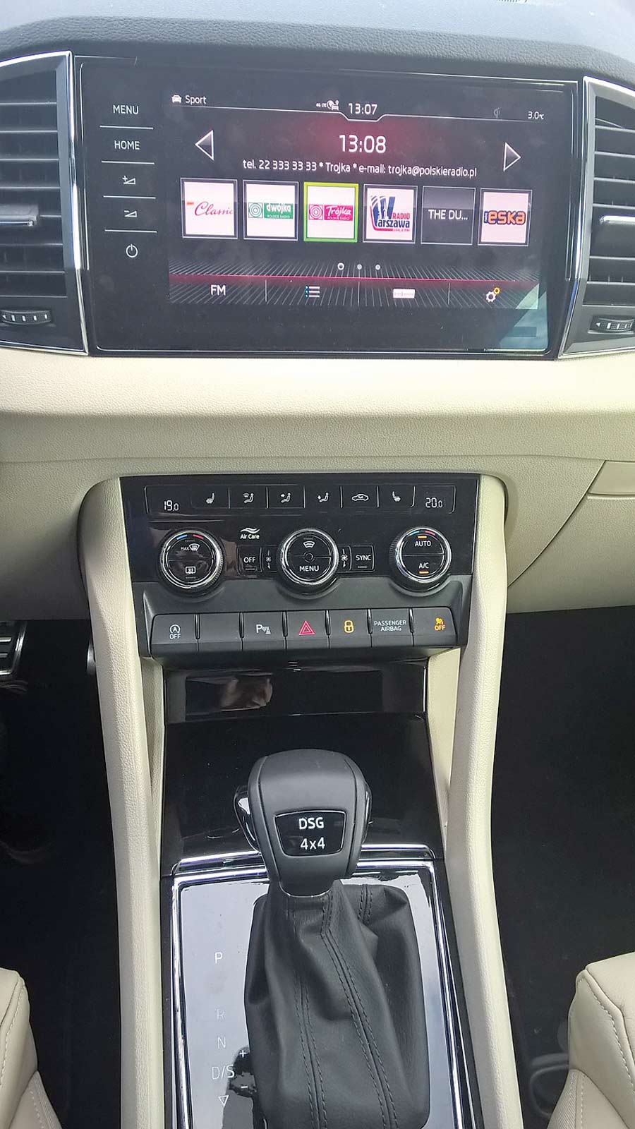 Do debiutujących rozwiązań należy między innymi elektrycznie zwalniany i odchylany zaczep holowniczy, który pojawia się tylko wtedy, gdy jest potrzebny. Centrum dowodzenia stanowi 9,2-calowy ekran System Infotainment Columbus. Oprócz systemu nawigacyjnego i wbudowanej pamięci, można go wyposażyć w moduł LTE, który jeszcze zwiększa możliwości i funkcjonalność. Oprócz sterowania dotykowego i głosowego po raz pierwszy w historii Skody pojawia się tutaj możliwość sterowania gestami.