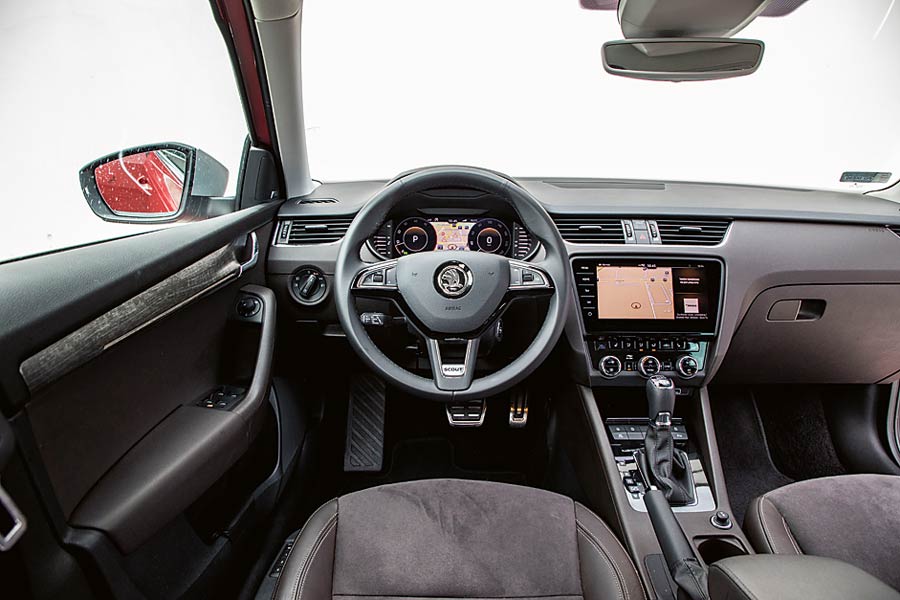 Skoda Octavia Scout bazuje na Octavii Combi 4×4. Różni się od niej jedynie zwiększonym prześwitem oraz plastikowymi nakładkami zamontowanymi na progach i „off-roadowymi” zderzakami. Wnętrze, jak na auta z grupy VAG przystało, jest bardzo przemyślane, o czym świadczy intuicyjne rozmieszczenie wszystkich przełączników, przycisków i pokręteł. Konsola środkowa została praktycznie zredukowana do wyświetlacza radia i nawigacji oraz do małego panelu sterowania klimatyzacji.