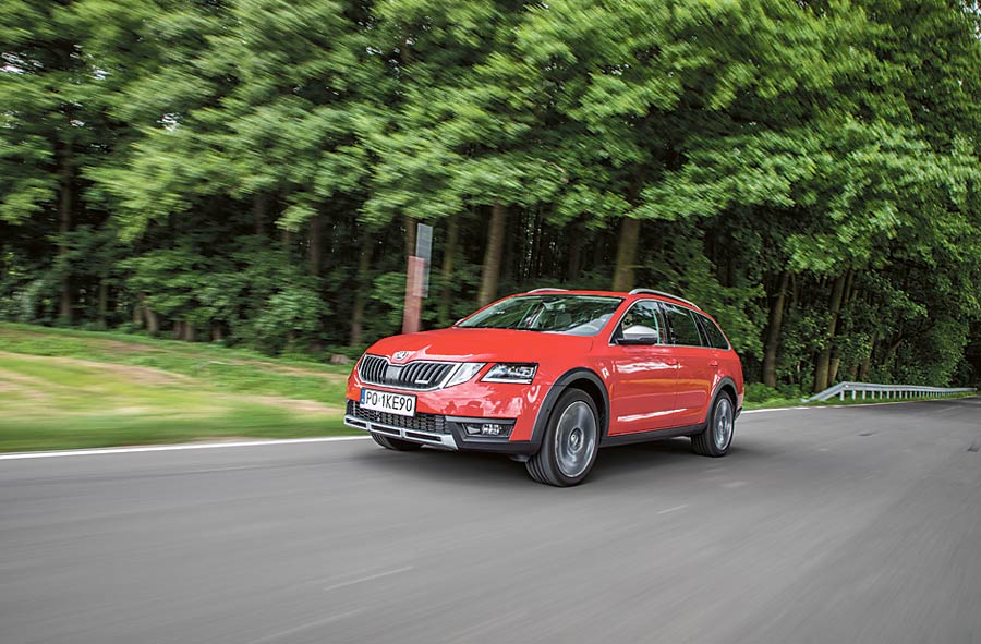 Scouta od zwykłej Octavii Combi odróżnia prześwit zwiększony o ponad 30 mm. Na pozór wydaje się, że to niewiele, ale są sytuacje, w których decydujące bywają milimetry (np. drogi z głębokimi koleinami czy śnieg). W Scoucie w standardzie mamy oczywiście zamontowane osłony podwozia oraz wzmocnione przednie zawieszenie. Za przeniesienie napędu odpowiada sprzęgło typu Haldex 5 generacji, które w zależności od warunków napędza obie osie pojazdu.