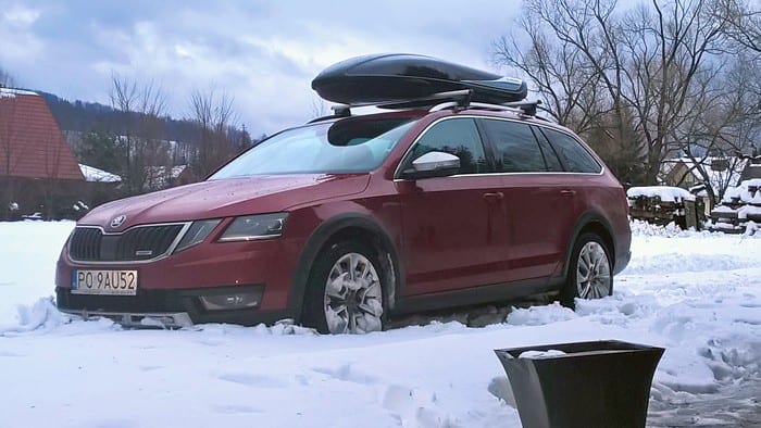 Scouta od zwykłej Octavii Combi odróżnia prześwit zwiększony o ponad 30 mm. Na pozór wydaje się, że to niewiele, ale są sytuacje, w których decydujące bywają milimetry (np. drogi z głębokimi koleinami czy śnieg). W Scoucie w standardzie mamy oczywiście zamontowane osłony podwozia oraz wzmocnione przednie zawieszenie. Za przeniesienie napędu odpowiada sprzęgło typu Haldex 5 generacji, które w zależności od warunków napędza obie osie pojazdu. Producent podkreśla, że elektroniczny sterownik płynnie rozdziela moment obrotowy na osie dzięki stałemu nadzorowi wielu parametrów pracy silnika, prędkości obrotowych poszczególnych kół, a nawet kąta skrętu kierownicy. O stabilność ruszania przy mniejszej prędkości jazdy dba seryjnie zastosowana w Octavii Scout elektroniczna blokada mechanizmu różnicowego (EDS).