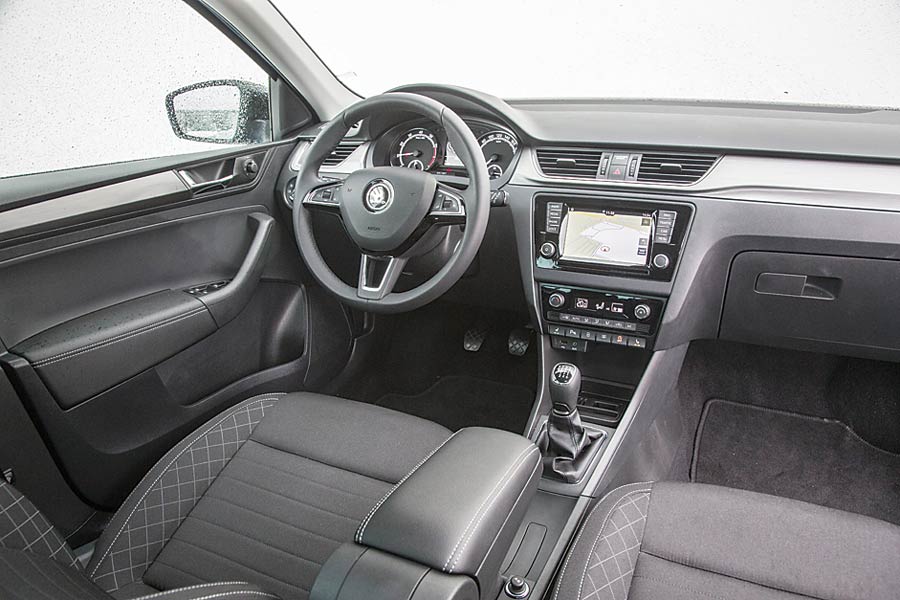 Stylistyka Rapida, mimo że nie jest porywająca, może się podobać. Niezłe proporcje, obłe kształty tu i ówdzie podkreślone przez ostre, proste przetłoczenia i duża powierzchnia przeszklona może nie czynią ze Skody samochodowej piękności, ale z pewnością przypadną do gustu kierowcom stawiającym na skromność, prostotę i funkcjonalność. Podobnie jest z wnętrzem, które ewidentnie zaprojektowane zostało nie po to, by cieszyć pasażerów doznaniami wzrokowymi, ale by czynić podróż maksymalnie wygodną i nieskomplikowaną. Kabina – wykończona dość twardymi, ale doskonale spasowanymi materiałami – jest prosta, ale wykończenie w kolorze czarnym i kremowym świetnie ożywia to dość surowe wnętrze. Poza tym Rapid charakteryzuje się doskonałą ergonomią wnętrza, która jest wręcz wzorcowa. Wszystkie pokrętła, przyciski, włączniki są w zasięgu ręki kierowcy, podobnie jest z panelem sterowania klimatyzacji. Na słowa uznania zasługuje też pozycja za kierownicą, naprawdę wygodne fotele i całkiem spora przestrzeń na nogi w drugim rzędzie siedzeń. Jednak największym atutem Rapida jest jego kufer – 550 litrów pojemności czyni go bezsprzecznie królem segmentu.