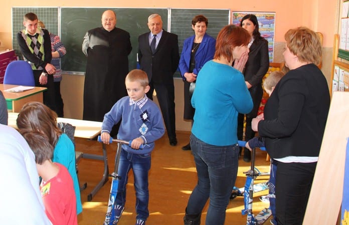 – Dzieci z niecierpliwością czekały na tę wizytę, przełożoną z powodu ferii zimowych – opowiada Sławomir Kamiński, rzecznik powiatu krasnostawskiego. Na tę okazję do szkoły zaproszono ks. proboszcza Henryka Kozyrę, radną powiatową Elżbietę Makuch, starostę Janusza Szpaka oraz rodziców dzieci z Wirkowic. – Kiedy wniesiono duże pudła i zaczęto je rozpakowywać na twarzach maluchów pojawiły się szerokie uśmiechy. Dla każdego z najmłodszych uczniów tej szkoły sponsor zakupił kolorową hulajnogę.
