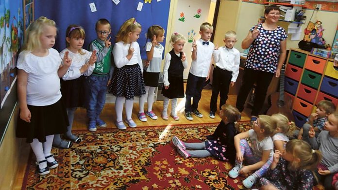 Dzieci przygotowywały występy wokalne i taneczne pod kierunkiem pań: Elżbiety Dobosz, Renaty Marczewskiej, Barbary Gołębiowskiej oraz Małgorzaty Dzik. Po części artystycznej dyrektor Izabela Józefowska dokonała uroczystego pasowania maluchów na przedszkolaków kładąc na ramieniu każdego dziecka dużą kredkę. (k)