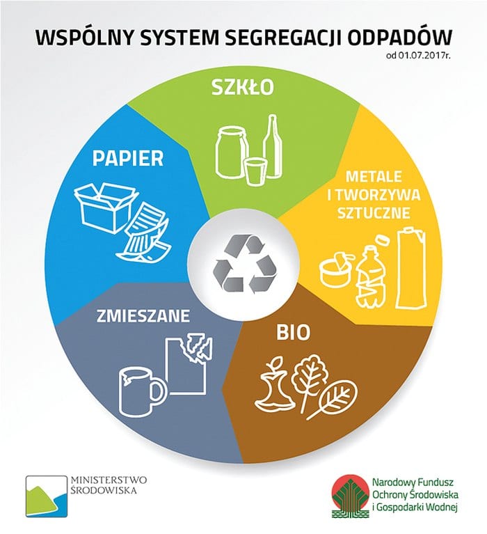 Od lipca system selektywnej zbiórki odpadów został ujednolicony w całym kraju. Odpady trafią do czterech pojemników o takiej samej barwie w każdej gminie: szkło do zielonego, papier do niebieskiego, metale i plastik do żółtego, a resztki kuchenne (czyli odpady ulegające biodegradacji) – do brązowego. W praktyce będzie prawdopodobnie jeszcze jeden pojemnik – na odpady resztkowe, czyli zmieszane.