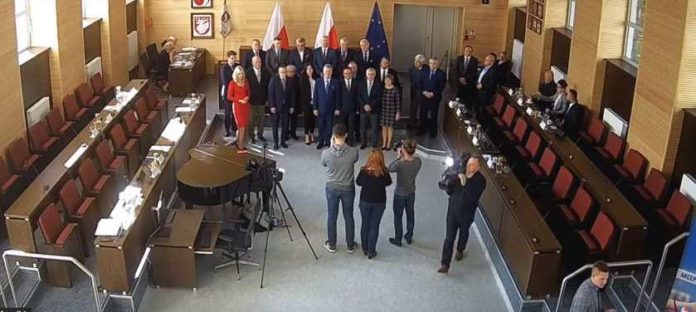 Po tym burmistrz i radni zrobili sobie wspólne zdjęcie z wiceministrem, choć część rajców opozycji odmówiła pozowania podnosząc zarzut, że to akcja wyborcza.
