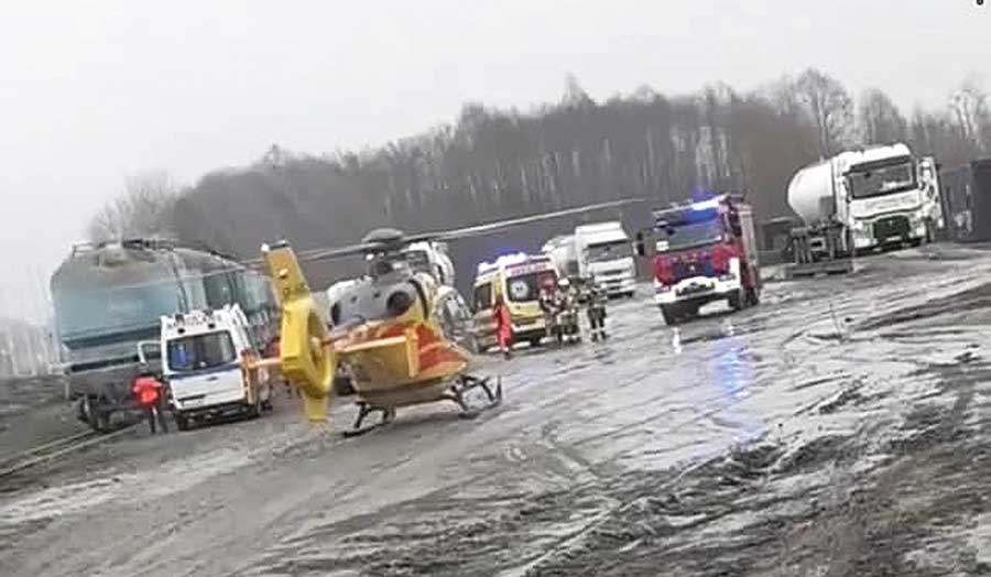 W piątek (18 listopada) pracujący przy rozładunku cementu mężczyzna stracił równowagę i wypadł z wagonu kolejowego na torowisko. Na miejsce niezwłocznie wezwano zespół ratownictwa medycznego. Niestety, stan poszkodowanego był poważny. Zapadła więc decyzja o wezwaniu śmigłowca LPR, który jak najszybciej przetransportował rannego do szpitala.