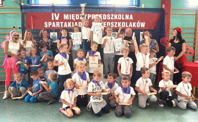 z Przedszkola Miejskiego nr 2, Przedszkola Miejskiego nr 1, Przedszkola Integracyjnego, Przedszkola Niepublicznego „Mała Akademia” oraz z oddziałów przedszkolnych przy SP nr 2 i SP nr 3. Na najmłodszych sportowców czekały m.in. konkurencje: „Posprzątaj mopem”, „Wożenie dyni na taczkach”, „Wyścig samochodowy” oraz „Pszczółkowe zabawy”. Zwyciężyła drużyna z Oddziału Przedszkolnego przy SP nr 3, przed Przedszkolem Integracyjnym i Oddziałem Przedszkolnym z SP nr 2. Kolejne miejsca zajęły przedszkola: „Mała Akademia” oraz Miejskie nr 1 i nr 2. Zawody sędziowali emerytowani nauczyciele: Józef Dudziński i Ewa Soroka oraz kierownik Wydziału Oświaty, Kultury i Promocji UM Agata Zakrzewska. Spartakiadę zorganizowało Przedszkole Miejskie nr 2. Imprezę prowadziły: Bogusława Górska i Marzena Sugier. (ad)