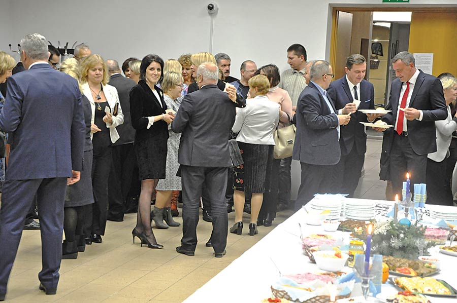 Po krótkim wystąpieniu starosty, słowa życzeń skierowali do obecnych: ks. Jerzy Ignaciuk, o. Dariusz Cichor i ks. Dariusz Parafiniuk. Po tych słowach, wszyscy łamali się tradycyjnym opłatkiem, składali sobie życzenia świąteczne i kosztowali wigilijne potrawy.