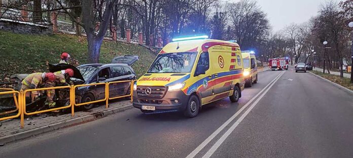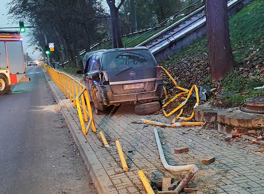 Dopiero na murze okalającym park zatrzymał się rozpędzony opel, który po uderzeniu w drugi samochód, wjechał na chodnik, przebijając bariery ochronne. Na szczęście nikomu nic się nie stało..