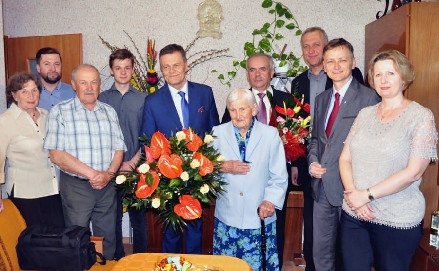 W tym wyjątkowym dniu panią Janinę odwiedzili przedstawiciele Urzędu Miasta oraz KRUS-u w Piaskach. Były życzenia, kwiaty i listy gratulacyjne, w tym list od premier Beaty Szydło, który dostojnej jubilatce przekazał burmistrz Waldemar Jakson. Natomiast Zbigniew Twaróg, kierownik KRUS w Piaskach, oprócz życzeń i gratulacji miał dla pani Janiny jeszcze dobrą wiadomość o nabyciu przez nią prawa do specjalnego dodatku do emerytury, który przysługuje wszystkim osobom, które przekroczyły setny rok życia. (opr. w)