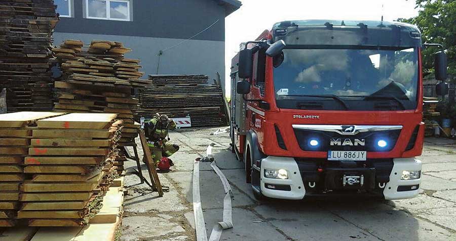 Tematem przewodnim była taktyka prowadzenia działań ratowniczo-gaśniczych w obiektach zajmujących się obróbką drewna.
