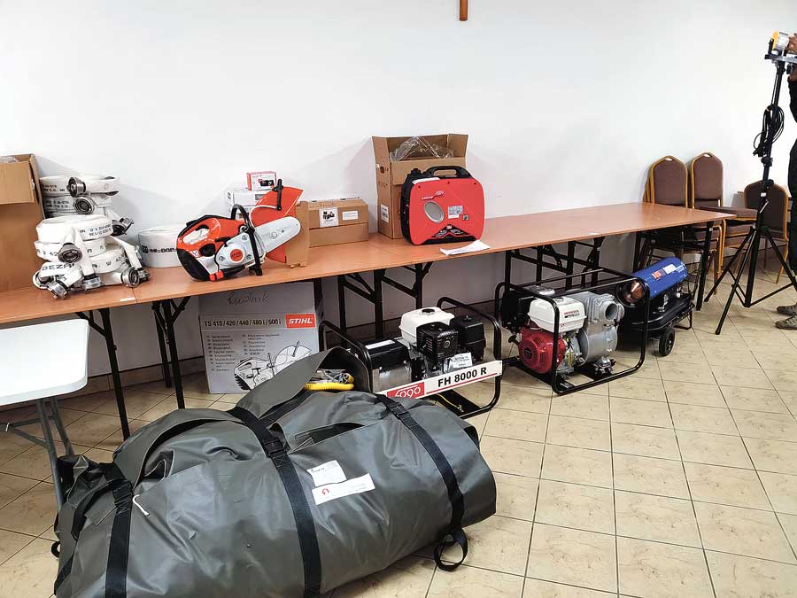 Dotacja wyniosła 93 tys. zł. Wójt gminy Rudnik Paweł Kucharczyk przekazał druhom z OSP następujący sprzęt i wyposażenie: zestaw poduszek wysokociśnieniowych, przecinarka do betonu, dziesięć węży W42, dziesięć kompletów ubrań specjalnych, cztery latarki z ładownicami, trzy radiotelefony, wideo rejestrator, kamera termowizyjna, agregat prądotwórczy trójfazowy, motopompa szlamowa, przyczepa ratownicza z wyposażeniem (namiot pneumatyczny z nagrzewnicą, oświetleniem i agregatem walizkowym). Większość sprzętu zostanie wykorzystana jako wyposażenie nowego samochodu ratowniczo-gaśniczego, który niebawem trafi do OSP Rudnik. (k)