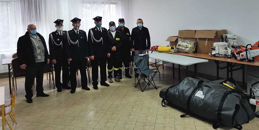 Dotacja wyniosła 93 tys. zł. Wójt gminy Rudnik Paweł Kucharczyk przekazał druhom z OSP następujący sprzęt i wyposażenie: zestaw poduszek wysokociśnieniowych, przecinarka do betonu, dziesięć węży W42, dziesięć kompletów ubrań specjalnych, cztery latarki z ładownicami, trzy radiotelefony, wideo rejestrator, kamera termowizyjna, agregat prądotwórczy trójfazowy, motopompa szlamowa, przyczepa ratownicza z wyposażeniem (namiot pneumatyczny z nagrzewnicą, oświetleniem i agregatem walizkowym). Większość sprzętu zostanie wykorzystana jako wyposażenie nowego samochodu ratowniczo-gaśniczego, który niebawem trafi do OSP Rudnik. (k)