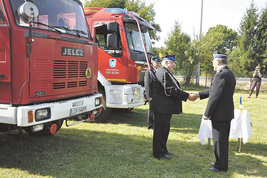 Druh Bogdan Sawicki przedstawił krótką historię OSP w Rudzie, po czym przedstawiciel fundatora sztandaru, druh Sławomir Gil, odczytał akt fundacji sztandaru. Jednostka w uznaniu zasług została odznaczona „Złotym Medalem za Zasługi dla Pożarnictwa”. Najstarsi stażem druhowie: Mieczysław Smal, Henryk Piłat, Wiesław Szalewicz, Bogdan Sawicki i Mieczysław Szalewicz w uznaniu za długoletnią służbę w szeregach OSP otrzymali dyplomy gratulacyjne. (k)