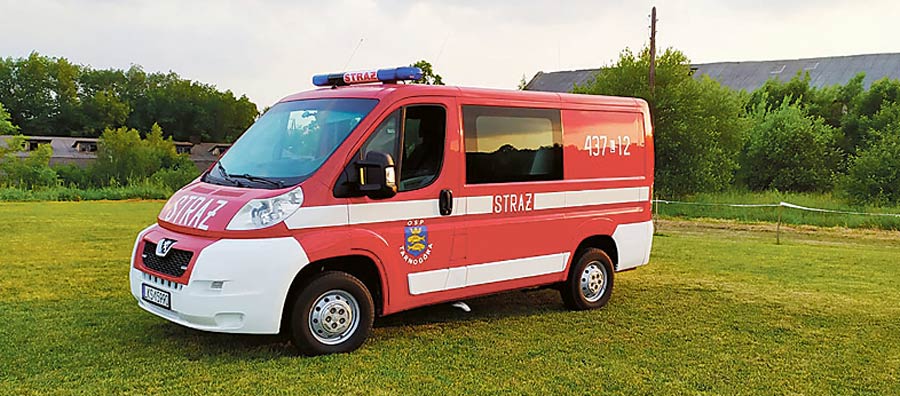 Druhowie z OSP w Tarnogórze cieszą się z nowego, lekkiego samochodu pożarniczego Peugeot Boxer, który zastąpi wysłużonego już Mercedesa.