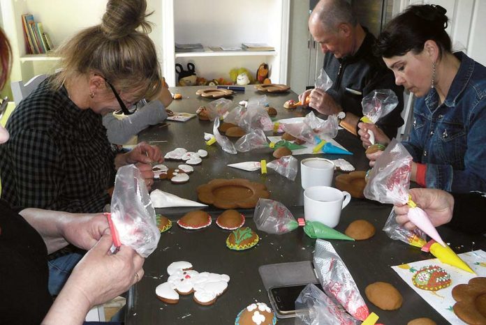 W zajęciach uczestniczyły nie tylko panie, ale również i panowie, którzy świetnie sobie radzili z lukrowaniem całego stroika. Dziękujemy wszystkim uczestnikom warsztatów za wspólne spędzenie czasu, miłą atmosferę, jak również dobrą zabawę. (b)
