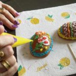 Stroik zawierał piernikowy talerzyk, na którym stał zając oraz pisanki 3D, malowane lukrem w wiosennych kolorach. Ozdabianie lukrem wymagało od uczestników warsztatów wielkiej precyzji i pomysłowości, co wcale nie było takie łatwe. Całością warsztatów kierowała Anna Rymkiewicz z „Kresowych Pierników”.