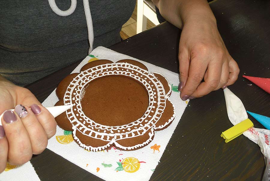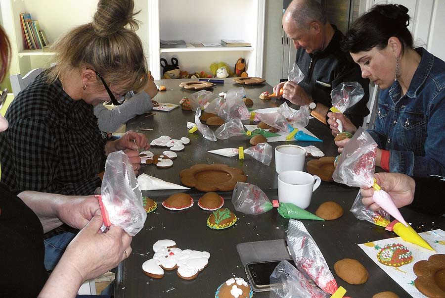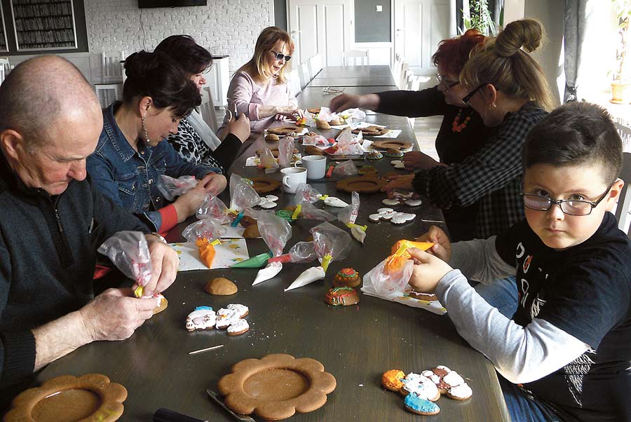 W zajęciach uczestniczyły nie tylko panie, ale również i panowie, którzy świetnie sobie radzili z lukrowaniem całego stroika. Dziękujemy wszystkim uczestnikom warsztatów za wspólne spędzenie czasu, miłą atmosferę, jak również dobrą zabawę. (b)