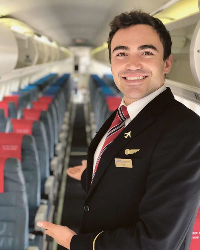 Kacper mówi, że pracę jako steward podjął, aby zarobić na wakacje i tak już zostało. – I nie zamierzam schodzić z pokładu, dopóki nie skończę szkolenia samolotowego -mówi. (bf)