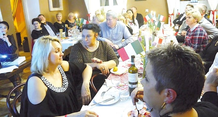 Wieczór włoski nie mógł się odbyć nigdzie indziej, jak w Gospodzie Sto Pociech. Była degustacja win i potraw rodem ze słonecznej Italii, oryginalna prezentacja z podróży po Włoszech, antologia piosenki oraz losowanie atrakcyjnych nagród z włoskiego sklepu. A jako że włoski klimat i kuchnię kochają wszyscy, sala na jubileuszowym spotkaniu klubu dosłownie pękała w szwach.