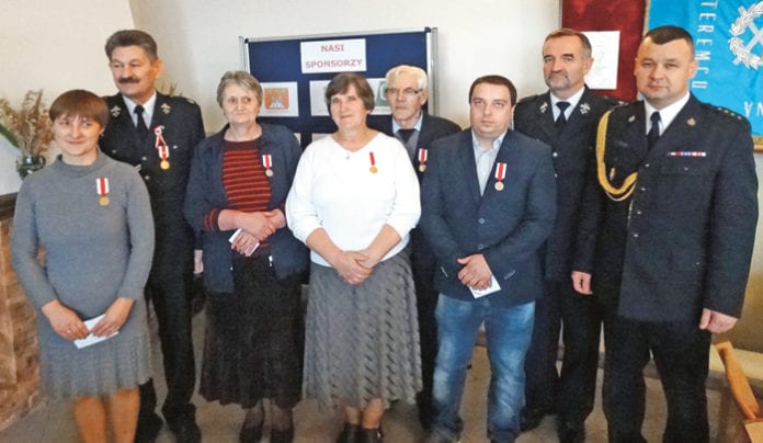 A tuż po nabożeństwie uroczystości jubileuszowe przeniosły się do remizy w Teremcu. Tam też uhonorowani zostali druhowie: Grażyna Kramek i Henryk Olenderb (złotym medal za zasługi dla pożarnictwa), Maria Kiełbasa i Julian Bigos (srebrny medal) oraz Agnieszka Kiełbasa i Krzysztof Cyc (brązowy medal). Natomiast odznakę „Strażak Wzorowy” otrzymali: Adrian Chwedyna, Maciej Demczuk, Robert Demczuk, Tomasz Demczuk, Szymon Kramek, Grzegorz Kurpa, Paweł Lichtarski i Konrad Stryluk. (mg)
