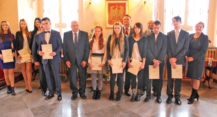 W piątek, 16 grudnia, w refektarzu Muzeum Regionalnego w Krasnymstawie odbyło się uroczyste wręczenie stypendiów starosty dla uczniów szkół ponadgimnazjalnych z terenu powiatu krasnostawskiego. W spotkaniu udział wzięli: kierownik filii w Chełmie Kuratorium Oświaty w Lublinie Arkadiusz Kwieciński, starosta krasnostawski Janusz Szpak, wicestarosta Henryk Czerniej przewodnicząca komisji oświaty Beata Jaremek oraz radny powiatowy Mirosław Księżuk. – Zarząd już po raz czternasty przyznaje stypendia i nadal będzie to czynił, bo jest to bardzo dobra inwestycja – mówił podczas uroczystości Szpak. – Młodzież, którą dziś honorujemy, sprawia nauczycielom wielką satysfakcję, staje się chlubą swoich szkół. Wyrazy wdzięczności kieruję ku nauczycielom i dyrektorom szkół, którzy opiekowali się uczniami, nierzadko poświęcając na to swój wolny czas. Szczególnie gorące podziękowania i słowa uznania składam na ręce wszystkich rodziców, możecie być państwo dumni ze swoich dzieci – dodał.