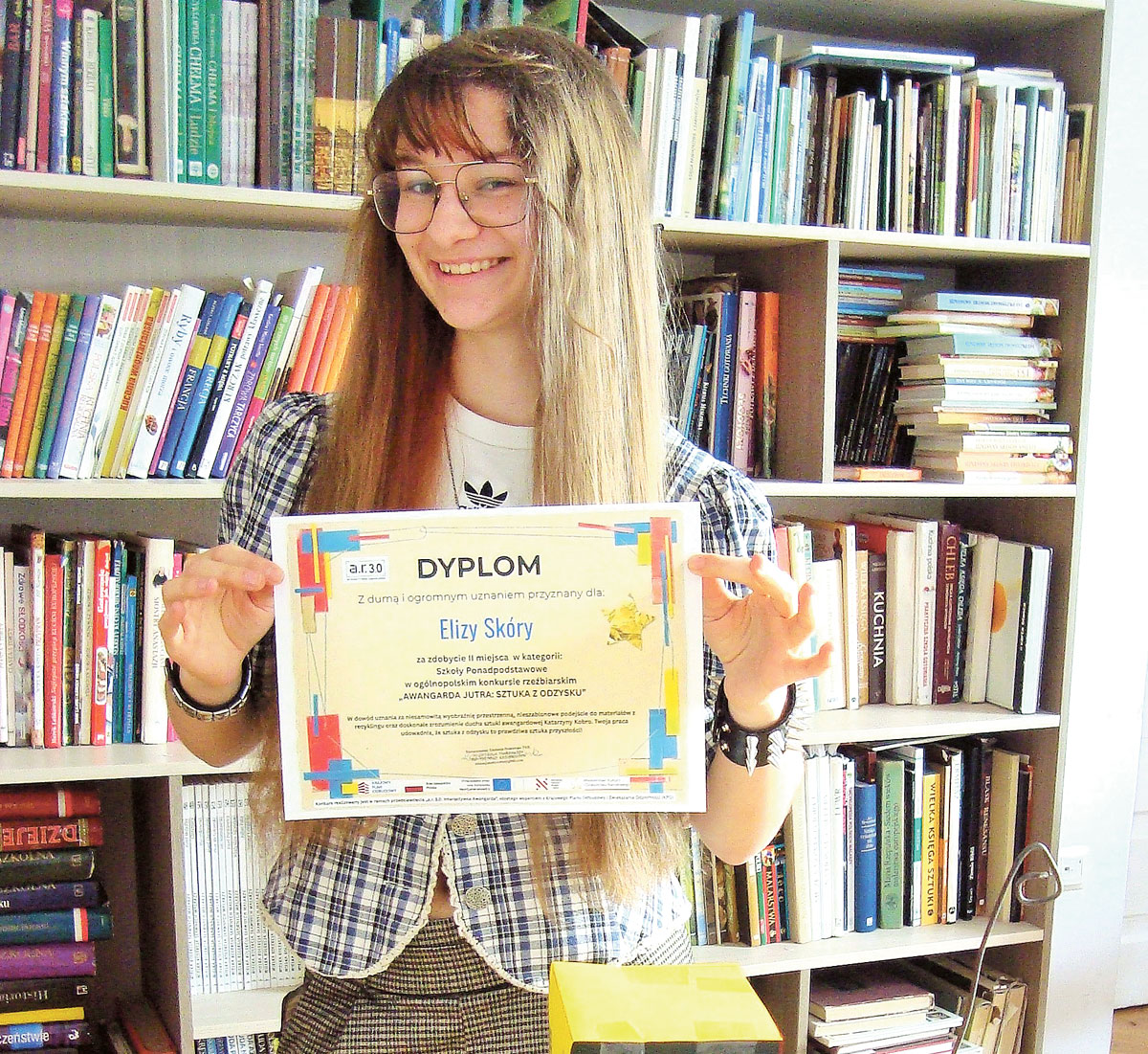 Eliza Skóra, uczennica Zespołu Szkół Gastronomicznych i Hotelarskich w Chełmie, zdobyła II miejsce w ogólnopolskim konkursie „Awangarda Jutra: Sztuka z Odzysku” w kategorii szkół ponadpodstawowych.