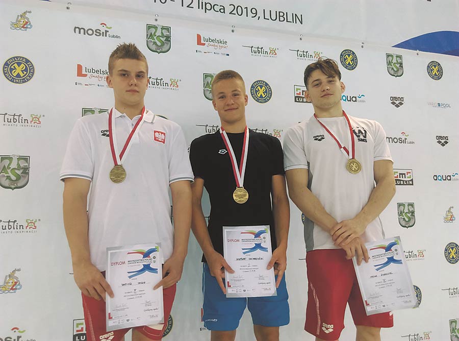 Kilka dni wcześniej, 5-7 lipca, odbyły się zawody w Olsztynie, gdzie dwa medale (złoto i brąz) zdobył z kolei inny zawodnik Wodnika Wojciech Sławacki. Krasnostawianin startował w kategorii juniorów młodszych 14-lat. Najlepszy wynik uzyskał pokonując rywali na 50 m stylem dowolnym (z czasem 25.30), a brąz wywalczył na 100 m tym samym stylem (w czasie 55.84). Norbert i Wojciech to podopieczni trenera Andrzeja Miciuły. (kg)