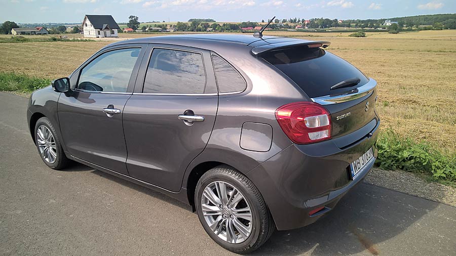 Na pierwszy rzut oka Suzuki Baleno nie rzuca się w oczy. Fakt, jest całkiem ładnym samochodem, ale niczym nie wyróżnia się z tłumu jemu podobnych. Bryła nadwozia jest stonowana, a z profilu przypomina nieco zapomnianego już Chevroleta Cruze w wersji liftback. Wnętrze jest bardzo funkcjonalne, ale też przytulne. Wszystko jest na swoim miejscu, kształt konsoli centralnej budzi pozytywne skojarzenia, a obsługa każdej funkcji auta intuicyjna. Miejsca z przodu jest pod dostatkiem, a jedynym mankamentem jest bardzo nisko zaczynający się dach, który skutecznie przesłania widok na sygnalizację świetlną. Bagażnik w Baleno ma przyzwoitą pojemność 320 litrów, choć dostęp do niego utrudnia wysoki próg i relatywnie mały otwór załadunku.