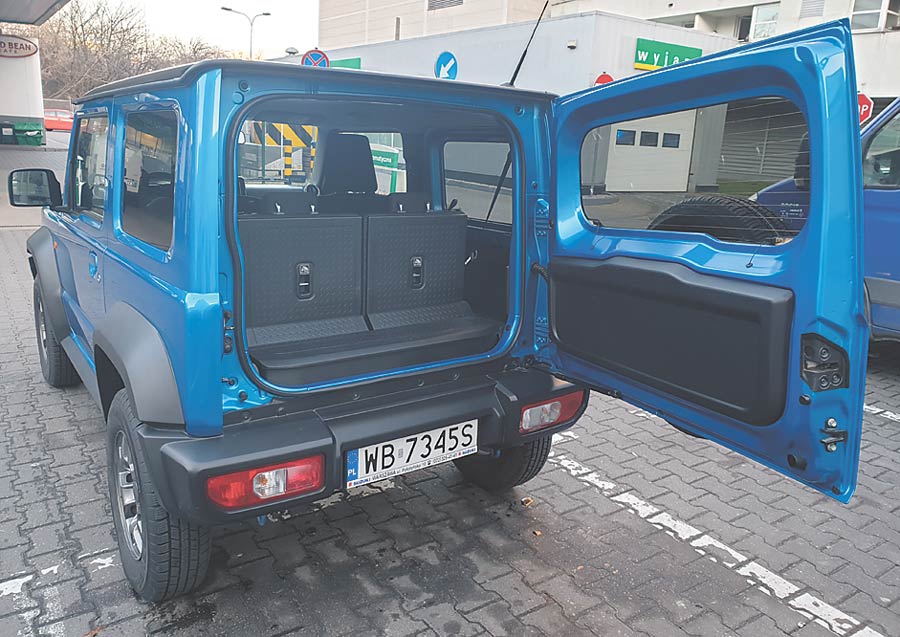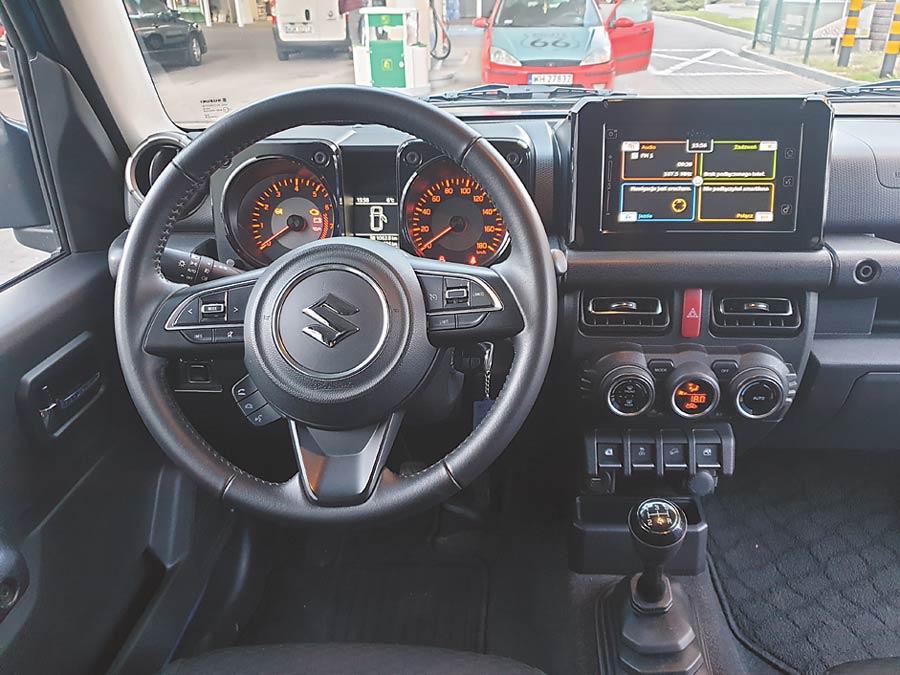 Prześwit wynosi 21 cm i może nie jest rekordowy, ale w połączeniu z niewielkim rozstawem osi pozwala na pokonywanie ostrych garbów i innych tego typu przeszkód. Auto jest bardzo wąskie, ma nieco ponad 160 cm szerokości, przy wysokości przekraczającej 170 cm i krótkie, więc idealnie sprawdzi się w lesie. Wnętrze to nowoczesna, wielofunkcyjna kierownica i dotykowy panel na środku kokpitu, które wmontowano w nieco archaicznie wyglądającą deskę rozdzielczą, która jest typowa dla wielu terenówek.