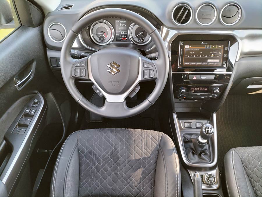Testowy egzemplarz Vitary napędzał benzynowy silnik o pojemności 1.4 współpracujący z manualną 6-stopniową skrzynią biegów. Jednostka generuje 129 KM, a dodatkowe 11 koni i 50 Nm zapewnia mały silnik elektryczny. Ten układ to tzw. miękka hybryda, więc kierowca nie ma możliwości żadnej ingerencji w jego ustawienia. Generator włącza się sam podczas ruszania czy mocniejszego wciśnięcia pedału przyspieszenia. Akumulator ładuje się również samoistnie podczas odpuszczania gazu i hamowania. Ale największym atutem silnika elektrycznego jest jego znaczny wpływ na spalanie. Katalogowo wynosi ono 5,4 litra benzyny. W teście oscylowało w okolicach 6 l/100 km.