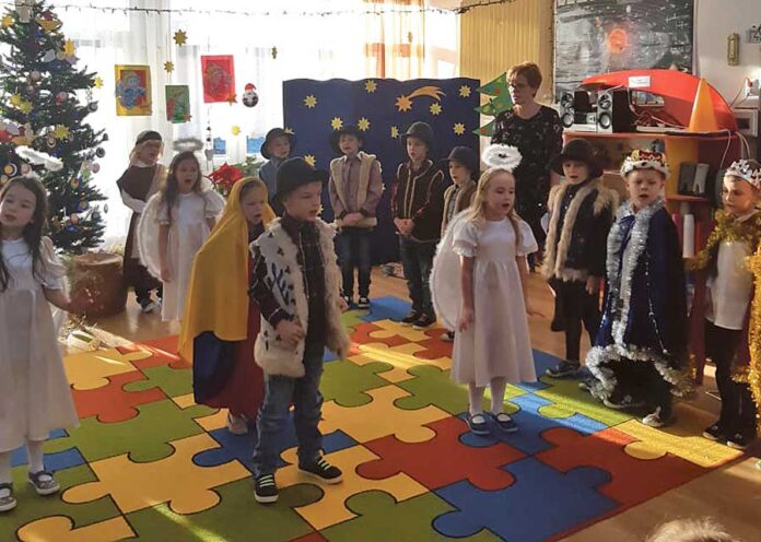 Przygotowania do tych wyjątkowych świątecznych spotkań przedszkolaki z „Ósemki” rozpoczęły na początku grudnia. Dekorowano i porządkowano sale, wykonywano świąteczne dekoracje, a przedszkolaki uczyły się wierszy, piosenek, kolęd i pastorałek. Punktem kulminacyjnym było „wigilijne spotkanie artystów”, przebiegające pod hasłem „Szła kolęda w noc grudniową – Cud w stajence”. Odświętnie ubrane przedszkolaki z niecierpliwością oczekiwały na wspólny, wigilijny obiad, podczas którego dzieliły się opłatkiem i składały sobie życzenia. (opr. mo)